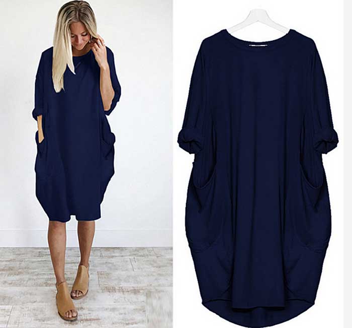 Damen-Freizeitkleid, Langarm, Midi, weiter, großzügiger, bequemer Schnitt